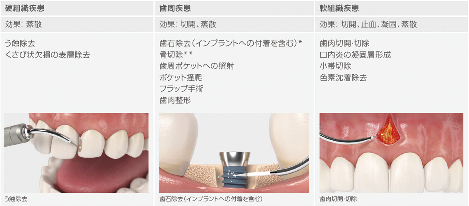 **骨形成、デコルチケーション等における骨の切開・蒸散が可能です。