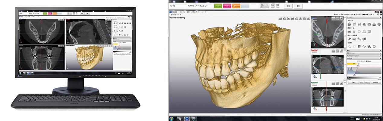インプラントの術前立体シミュレーションや、歯周病での骨の診査、歯根の病巣や破折の状態、埋まっている親知らずの診査など、多岐にわたる高度治療に貢献します。