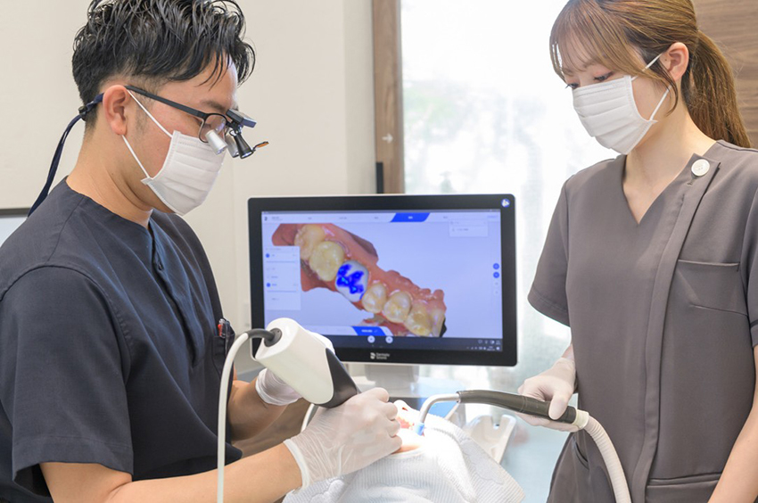 治療患部の拡大映像をモニターで確認しながら、精度の高い処置が行えます。歯面や歯間、根管内部の状態を正確に捉えることができるため、さまざまな症状に対して的確な治療がご提供可能です。