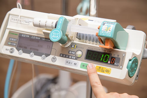 人工呼吸器を兼ね備えた純国産の全身麻酔(MERA PIXYS)を備え、患者さんの安全性を確保しています。歯科治療を受けることが難しい患者さんに対して、完全に寝ている状態で安全・快適な歯科治療を受けることができる、日帰り全身麻酔にも対応しています。