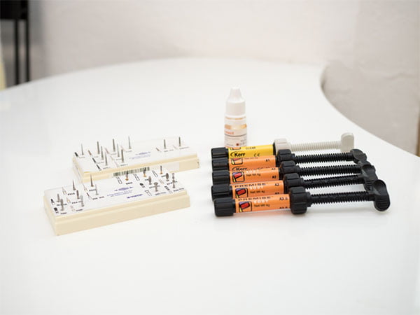 多くの場合、麻酔をして痛みのない状態で歯を削ります。当院の麻酔は表面麻酔を行った後、もっとも細い針を使用して、痛みを感じない麻酔を行います。歯の場合は削ったところに白いプラスチックを詰めます。奥歯の場合、削ったところの歯型をとり、金属の詰め物(小さい銀歯)を作って銀歯を歯にくっつけます(白いセラミックなどを詰めたい場合は保険外になります)。