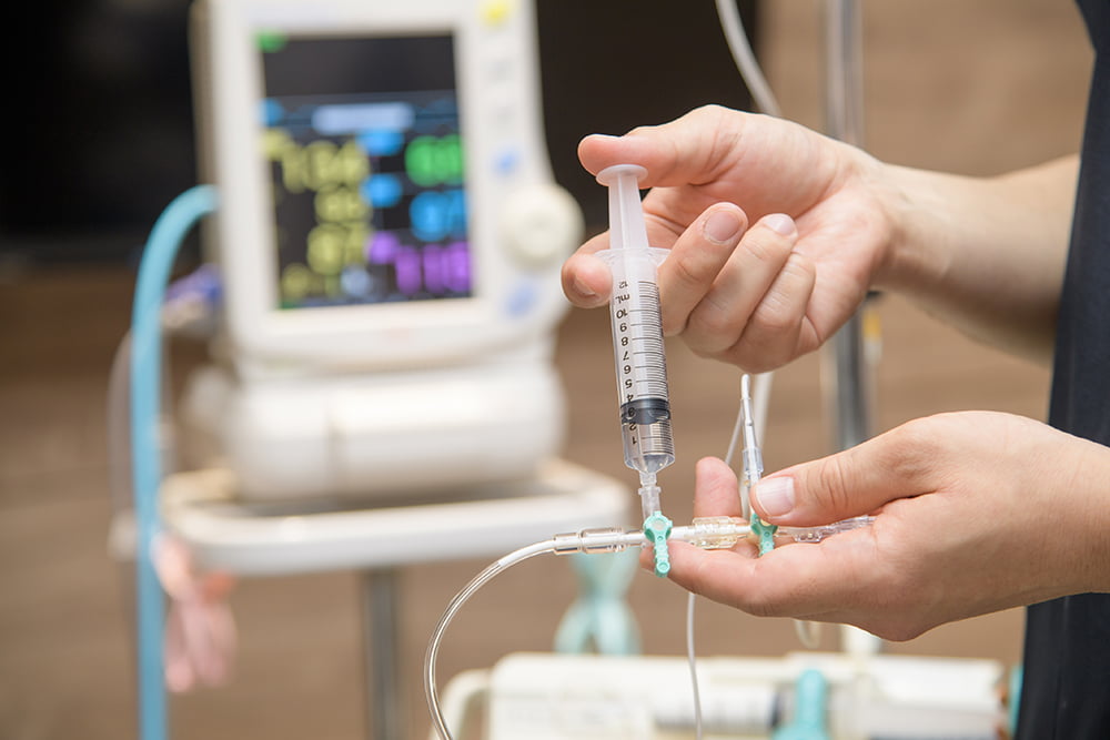 当院でのインプラント手術時には、手術に対する恐怖心やストレス無く手術を受けていただきたいという思いから、寝ながら行う手術(静脈内鎮静法)を提案させて頂いております。目が覚めたときには手術が終わっているため、リラックスした状態で治療を受けることができます。治療後は眠気・ふらつきが収まり次第そのまま帰宅可能ですので、入院の必要はありません。