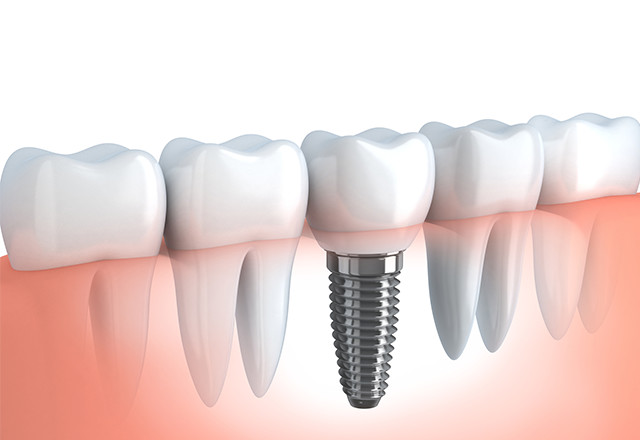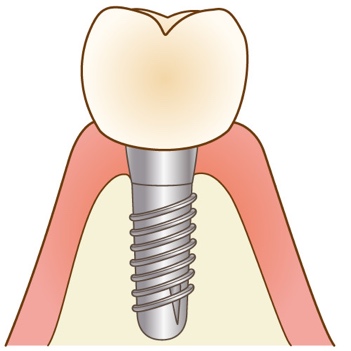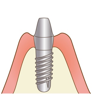 インプラントとは、歯を失ってしまった部分のあごの骨に結合するようにしっかりと埋め込む金属の人工歯根のことを言い、ご自分の歯のように噛むことができます。その上に土台と、最後に人工歯を装着します。