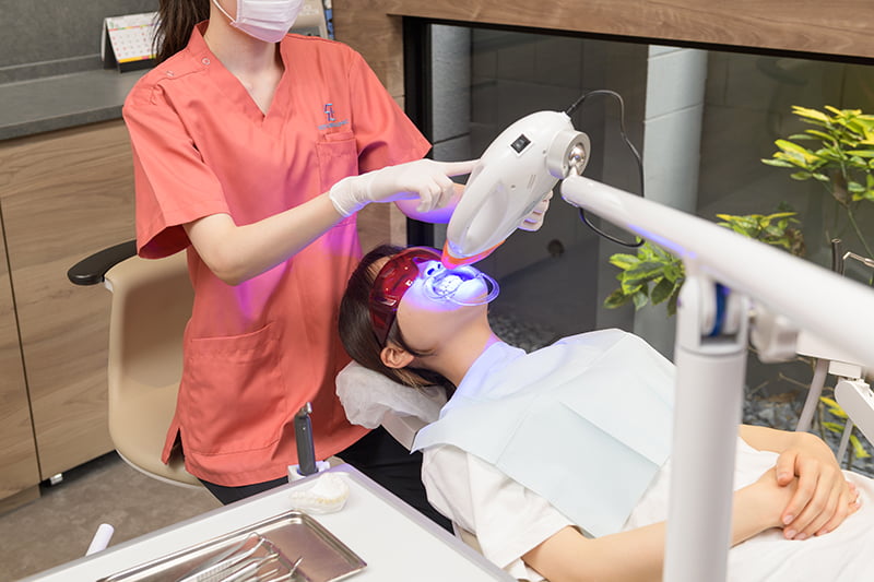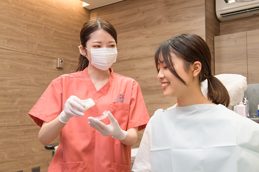 当院では、全てのスタッフがホワイトニング専門のクリニックでの実技指導を受けており、全てのスタッフがホワイトニングを経験しています。心配な点があれば気軽にご相談ください。