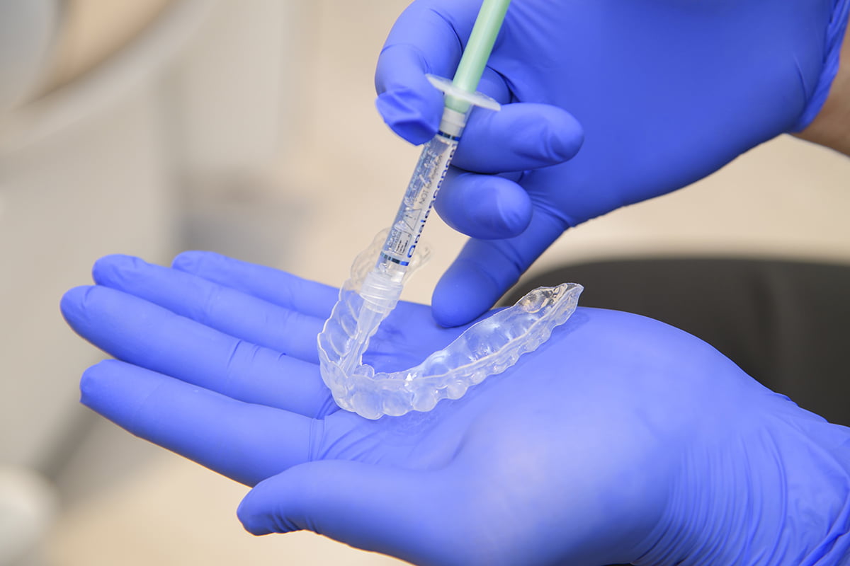 初回は一人ひとりの歯列に合わせた専用のカスタムトレー(マウスピース)の作製や準備のためにご来院いただきますが、トレーとホームホワイトニングキットを持ち帰ってからは、医院での指導内容に従ってご自宅にて施術を行っていただけます。頻度や時間もご自分のペースで構いませんが、より効果的に歯を白くするためにも、できるだけ毎日、長時間(6~8時間)使用することをおすすめしています。