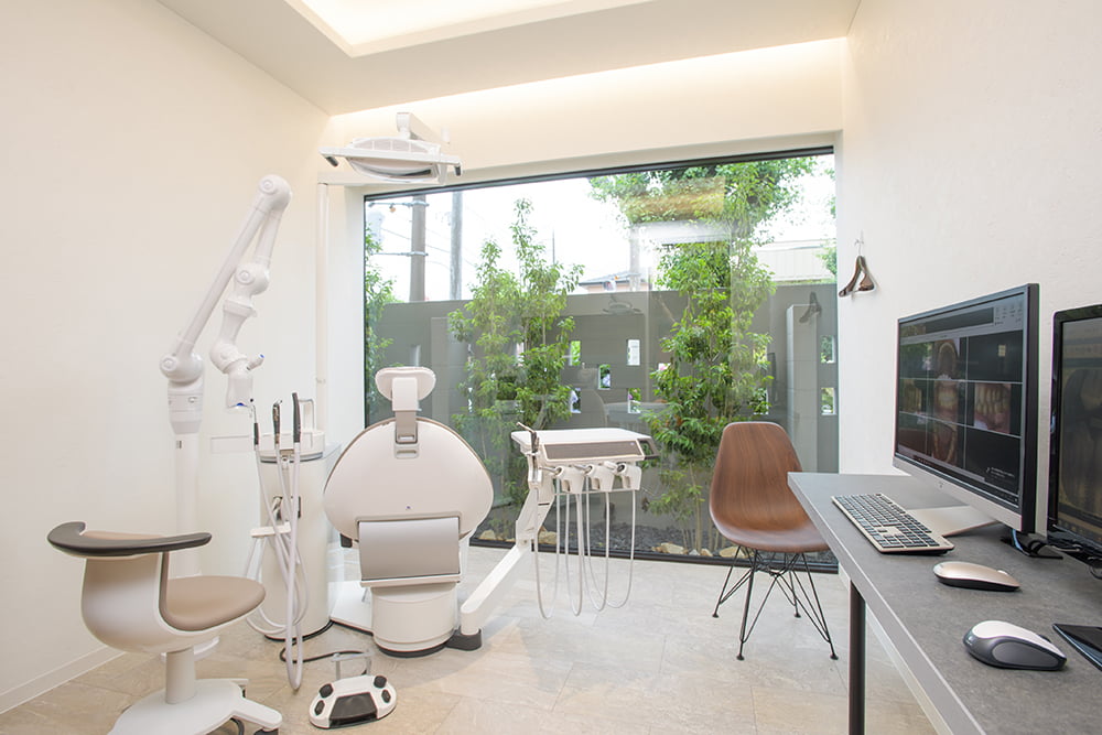 ホワイトニングで使用するお部屋は治療用のお部屋とは別れています。歯科治療時の削る音や歯科独特のにおいがしない清潔でリラックスのできるお部屋でゆったりと過ごすことができます。 デリケートなご相談も安心してお話ください。