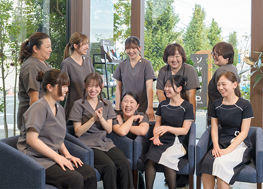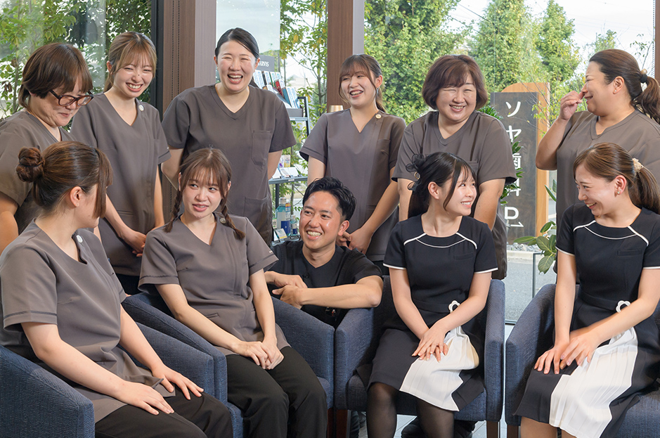 ソヤ歯科では、スタッフの皆さんが主役となり、一人ひとりが自分らしく働き、患者さんと共に笑顔になれる、環境作りに努めています。