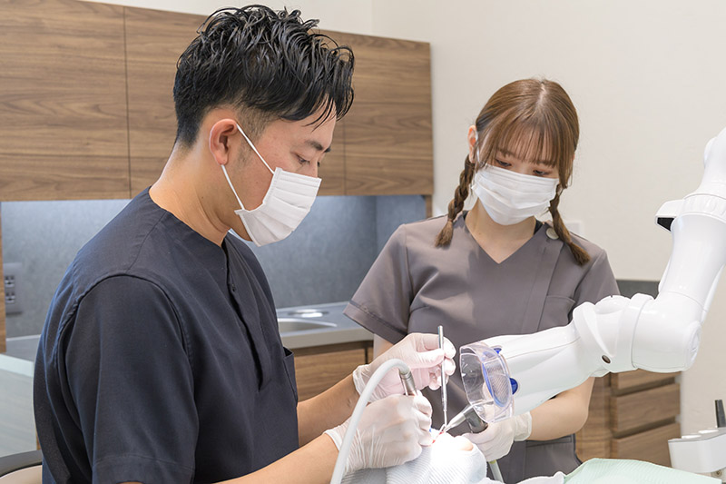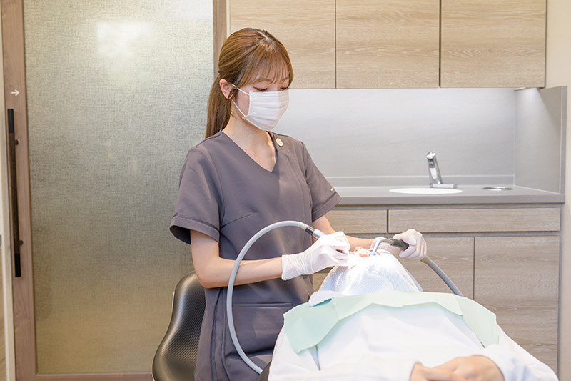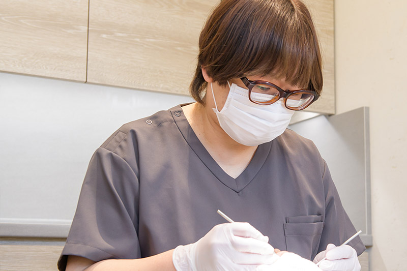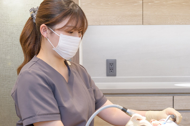 入職後は先輩衛生士とペアになり仕事の進め方や診療業務の基礎を教えていきます。慣れてきたら徐々にスケーリングから歯周病治療、オペアシストと段階的に経験していきます。