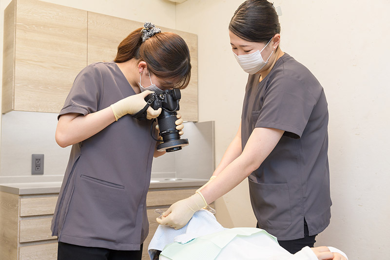 歯科用語や治療の手順、口腔内写真の撮り方など基本的なことから学べるオリジナルの図解マニュアルをスタッフ全員に配布しています。